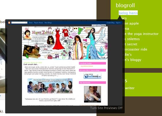There is no (or again, I couldn't find) bloglist widget - something like we have in Blogger that automatically sorts the bloglinks according to recent updates - as well as the feed for the post title. Although there is mShots - which displays a snapshot of the blog on the link - it is just not good enough. Macam ni rupa dia: